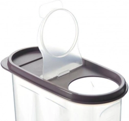 Utrzymaj swoją spiżarnię w porządku, a żywność świeżą. Przezroczysty pojemnik na sypkie produkty o pojemności 1,2 l ma pokrywkę z praktycznym dozownikiem do łatwego wysypywania bez konieczności otwierania całej pokrywki. Boczna miarka co 250 ml (250–1000 ml) zapewnia precyzyjne odmierzanie mąki, ryżu, cukru czy płatków.