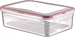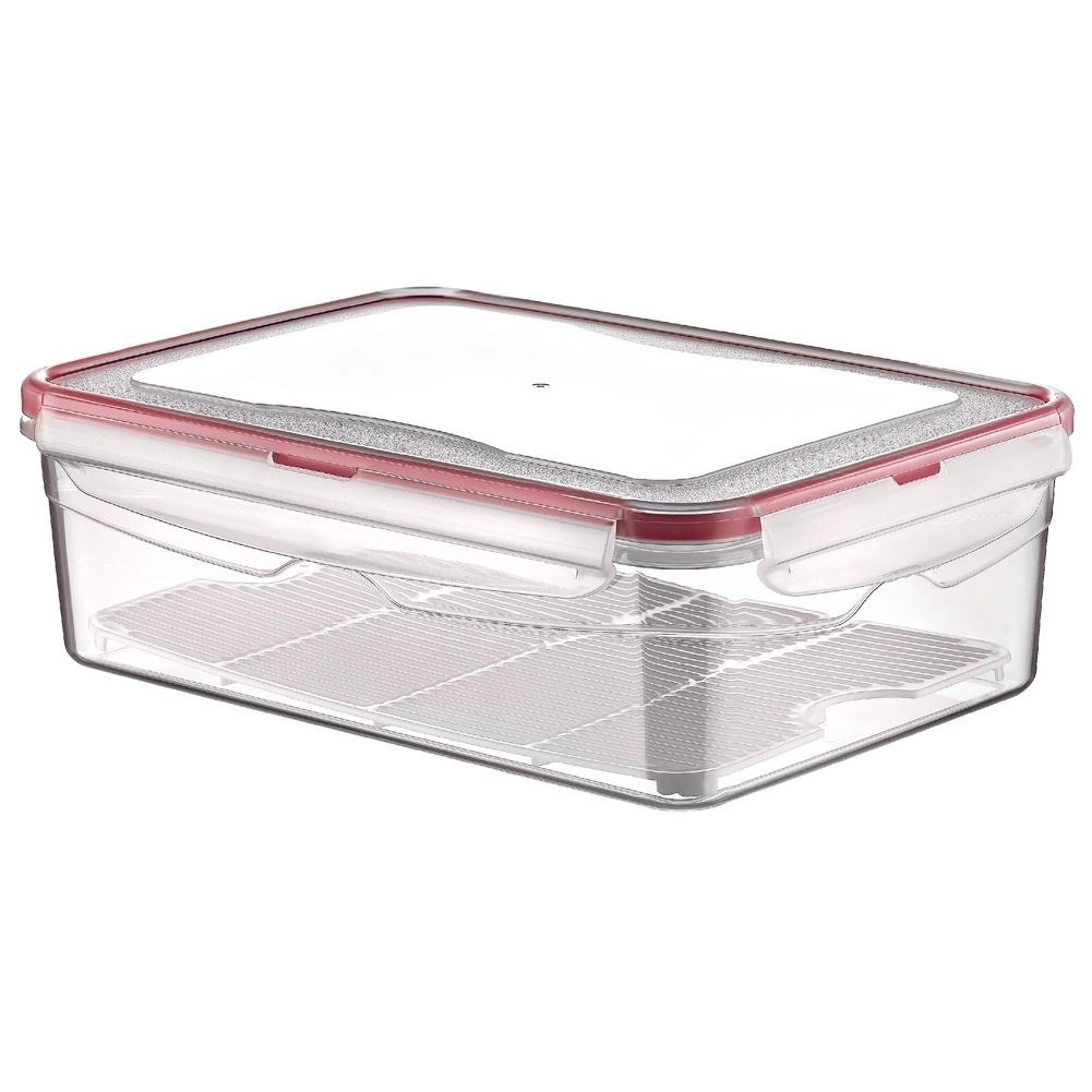Wyjmowana kratka zapewnia cyrkulację powietrza i oddzielenie produktów od dna, dzięki czemu wilgoć nie gromadzi się w pojemniku, a składniki pozostają dłużej świeże. Pokrywka z czterema solidnymi klipsami i silikonową uszczelką dba o maksymalną szczelność oraz ochronę przed wilgocią i zapachami.