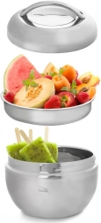 Ciesz się ciepłymi obiadami i zimnymi deserami kiedy chcesz i gdziekolwiek jesteś. Ten termos obiadowy z wysokiej jakości stali nierdzewnej ma gładką powierzchnię ułatwiającą czyszczenie oraz praktyczną wewnętrzną miskę do serwowania dodatków lub przekąsek. Pokrywka z zintegrowanym uchwytem zapewnia wygodne przenoszenie.