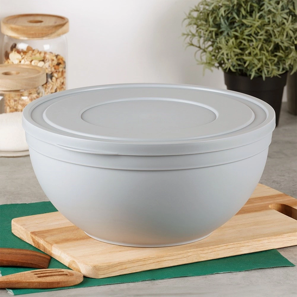 Duża misa z solidną, uszczelniającą pokrywką to świetny pomocnik do pieczenia i codziennego gotowania. Dzięki pojemności 6 litrów wygodnie przygotujesz ciasto na ciasta, chleb i pizzę. Gładkie ścianki ułatwiają mieszanie i czyszczenie, a pokrywka zapewnia świeżość i bezpieczne przechowywanie w lodówce.