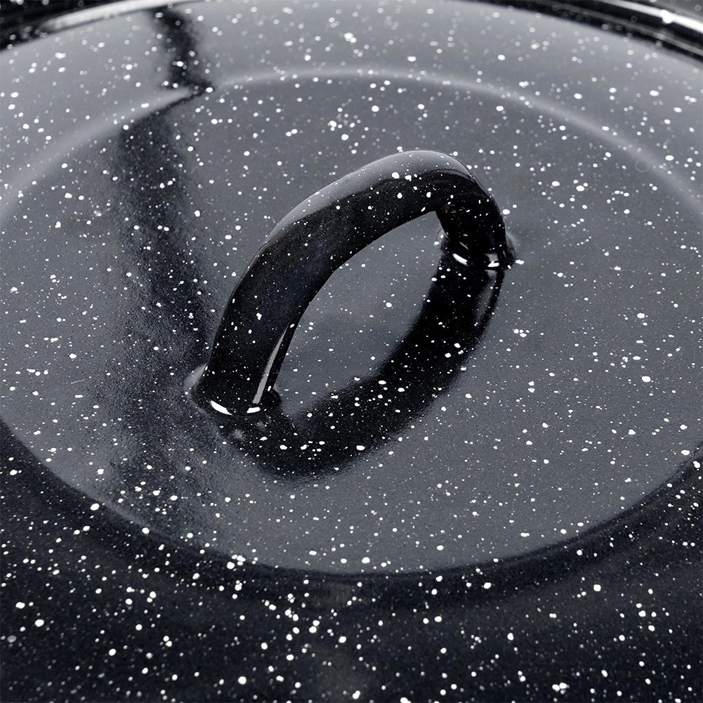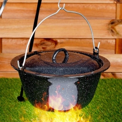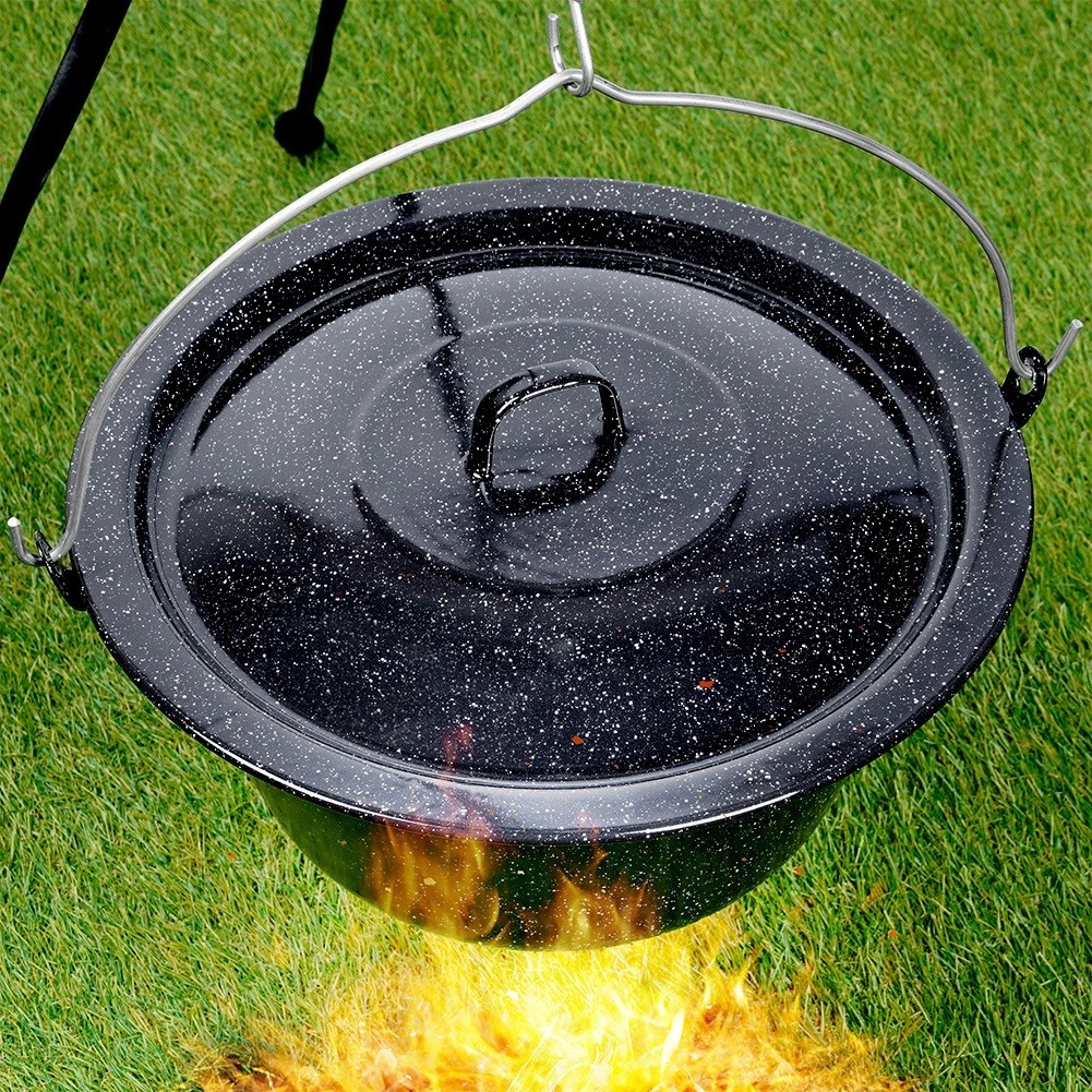 Czarna emalia chroni przed korozją i zarysowaniami, jest higieniczna i łatwa w czyszczeniu – idealna do regularnego gotowania na zewnątrz.