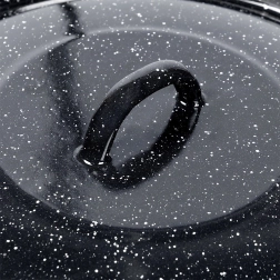 Stalowe korpus z emalią jest odporny na zarysowania i korozję, a solidny uchwyt zapewnia bezpieczne podnoszenie nawet w wyższych temperaturach. Emalia może naturalnie wykazywać drobne nierówności produkcyjne (wybrzuszenia, nierównomierne natryski itp.), które nie wpływają na jakość ani funkcjonalność.