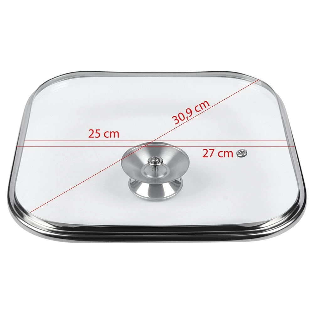Praktyczna pokrywa z przezroczystego, żaroodpornego szkła z solidną nierdzewną obwódką i wygodnym stalowym uchwytem to idealne uzupełnienie do kwadratowych garnków, patelni i rondli. Dzięki przezroczystej konstrukcji masz gotowanie zawsze pod kontrolą, bez uwalniania pary i ciepła.