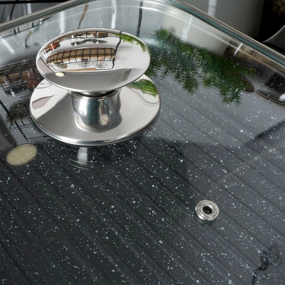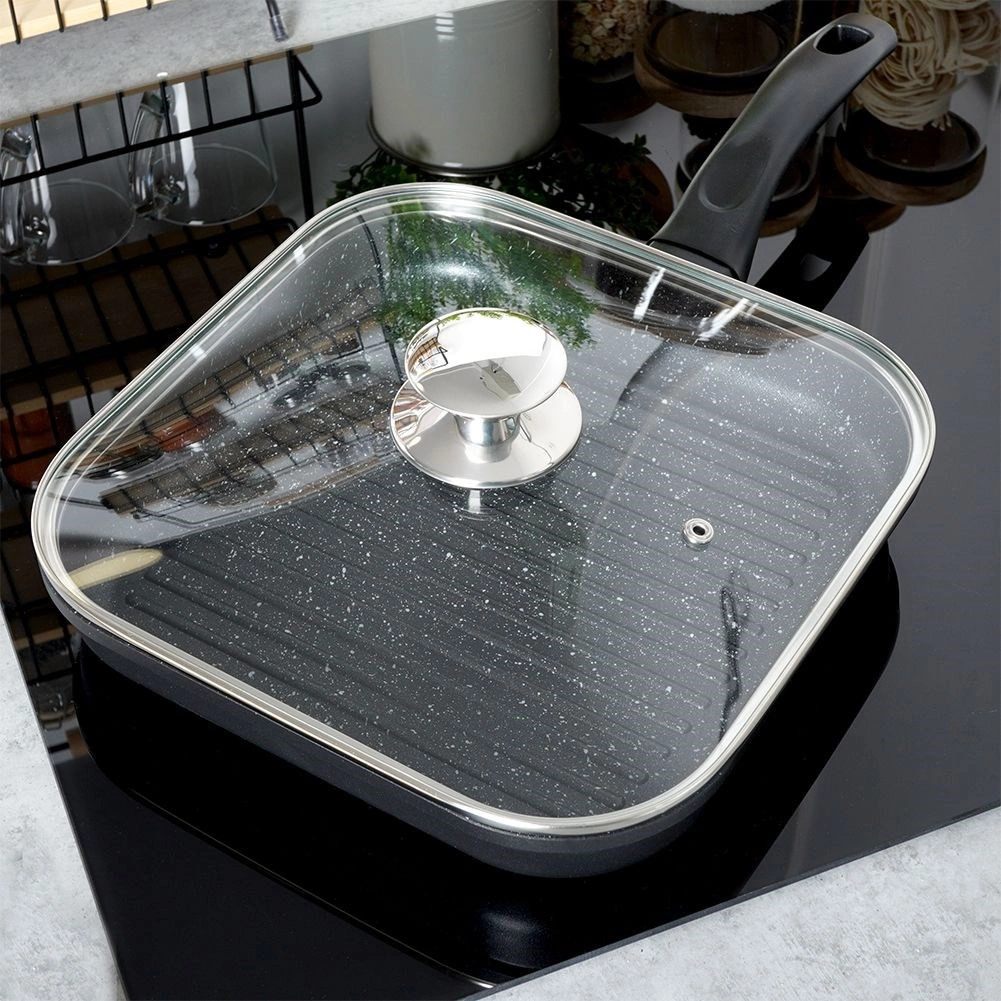 - Świetnie uzupełnia patelnie i garnki bez pokrywek; doskonale pasuje także do kwadratowej patelni grillowej