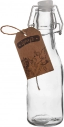 Praktyczna szklana butelka w stylu retro o pojemności 290 ml z niezawodnym klipsowym zamknięciem i silikonową uszczelką. Świetnie nadaje się na oliwę z oliwek, domowe syropy, likier czy wino. Dzięki przezroczystemu szkłu pięknie podkreśla zawartość, a hermetyczne zamknięcie utrzymuje świeżość i aromat bez ryzyka rozlania.