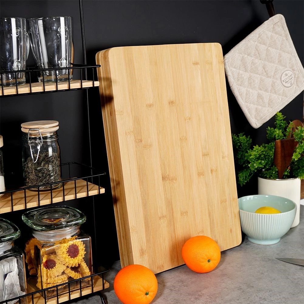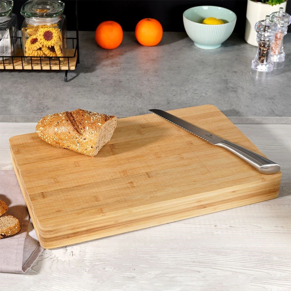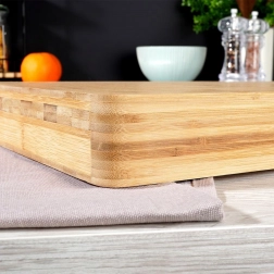 Gruba bambusowa deska zapewnia solidną i pewną bazę do krojenia oraz siekania, a jednocześnie jest delikatna dla ostrzy noży.