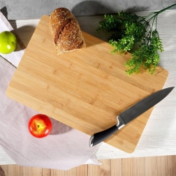 Ta masywna deska z naturalnego bambusa to świetny pomocnik do codziennego przygotowywania posiłków oraz atrakcyjnego serwowania serów, wędlin, owoców czy przekąsek. Drewno bambusowe jest naturalnie odporne na wilgoć i odkształcenia, jednocześnie delikatne dla ostrzy noży i łatwe w utrzymaniu czystości.