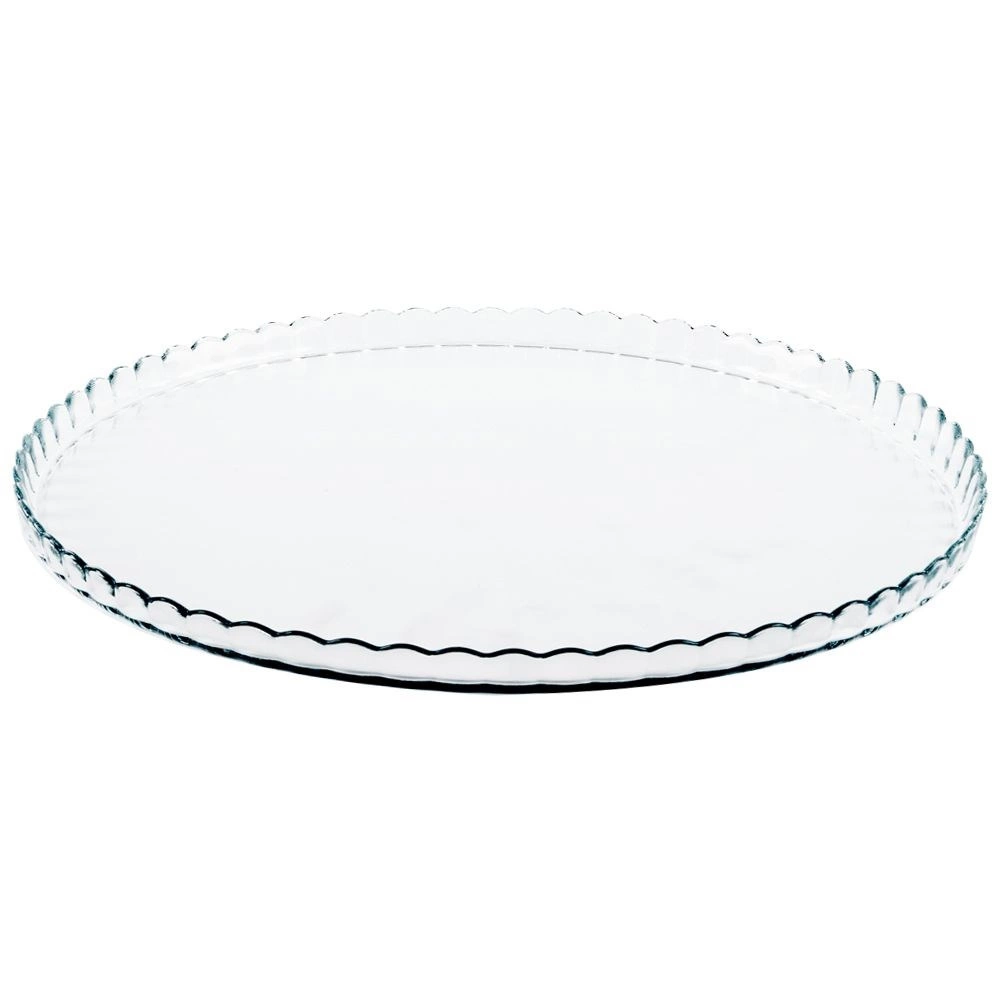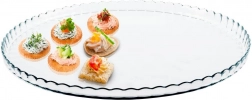Ta okrągła szklana patera w formie dużego talerza z ozdobną krawędzią to świetny wybór na co dzień i na uroczyste okazje. Dzięki przeźroczystemu wykończeniu doskonale pasuje do każdego nakrycia stołu i pozwala wyeksponować kolory oraz faktury Twoich potraw.