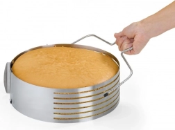 Ułatw sobie przygotowanie tortów dzięki wysokiej jakości nożowi strunowemu ze stali nierdzewnej. Dwie ostre struny o długości 29 cm gwarantują precyzyjne i proste cięcia, dzięki którym łatwo podzielisz korpus na równomierne warstwy. Narzędzie jest wytrzymałe, lekkie i świetnie leży w dłoni.