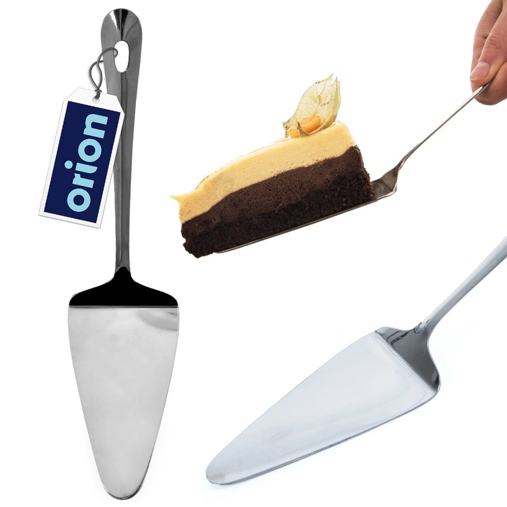 Ułatw sobie serwowanie deserów z nierdzewną łopatką ORION. Jednoczęściowa, metalowa konstrukcja z polerowaną powierzchnią łatwo się czyści i długo opiera się zużyciu. Ostro zakończone krawędzie pomagają sprawnie podebrać i porcjować torty, ciasta i pizzę, a ergonomiczny uchwyt zapewnia pewny i komfortowy chwyt.