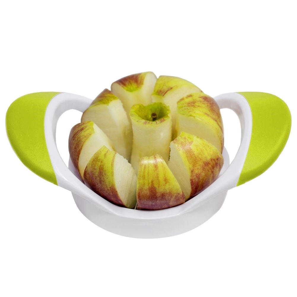 Ułatw sobie przygotowanie owoców praktycznym krajalnicą do jabłek, która jednym dociśnięciem tworzy 8 równych cząstek i jednocześnie usuwa gniazdo nasienne. Ergonomiczne antypoślizgowe uchwyty, ostre stalowe noże nierdzewne oraz łatwe mycie w zmywarce czynią z tego pomocnika idealny wybór do każdej kuchni.