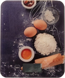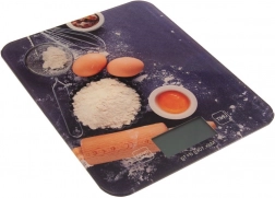 Praktyczna i stylowa waga kuchenna do precyzyjnego ważenia składników. Dzięki czytelnemu wyświetlaczowi LCD łatwo sprawdzisz masę owoców, warzyw, produktów sypkich i płynnych. Płaska konstrukcja z hartowanego szkła z dekoracyjnym motywem jest łatwa w czyszczeniu i oszczędza miejsce w szufladzie lub szafce.