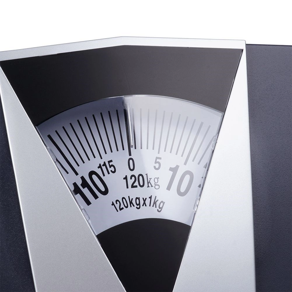 Niezawodna mechaniczna waga łazienkowa o maksymalnym udźwigu 120 kg z czytelną analogową tarczą. Dzięki antypoślizgowej powierzchni i wytrzymałej konstrukcji pasuje do każdej łazienki, nie wymaga baterii i oferuje łatwą kalibrację dla precyzycznego pomiaru.