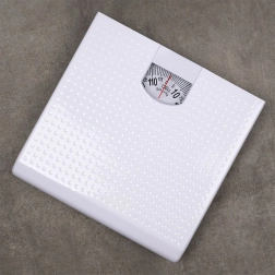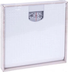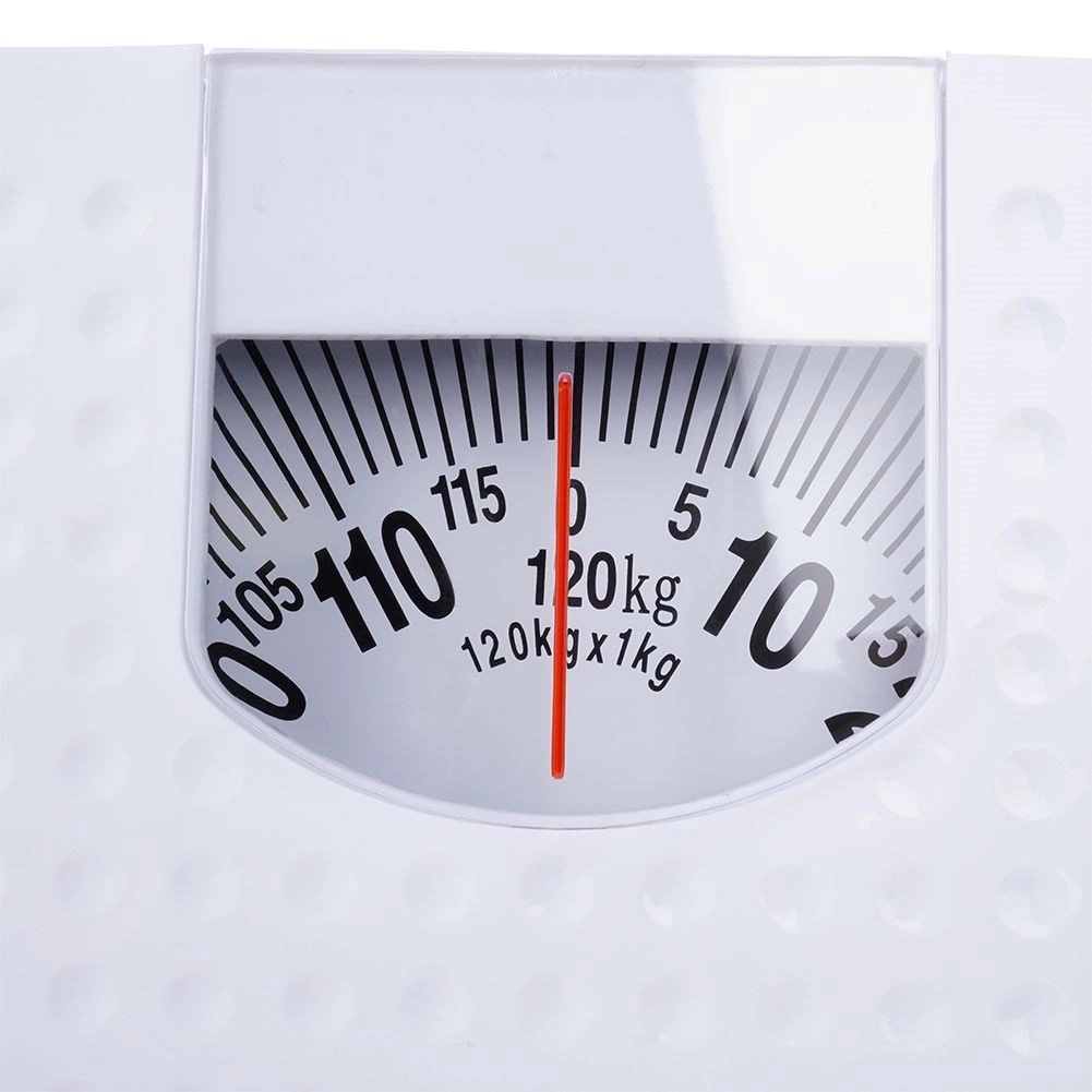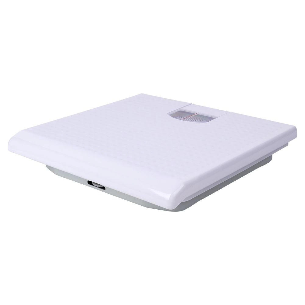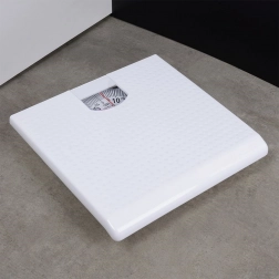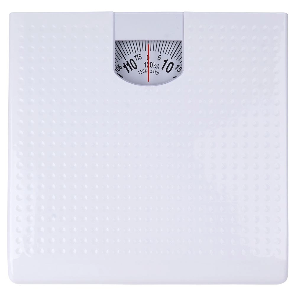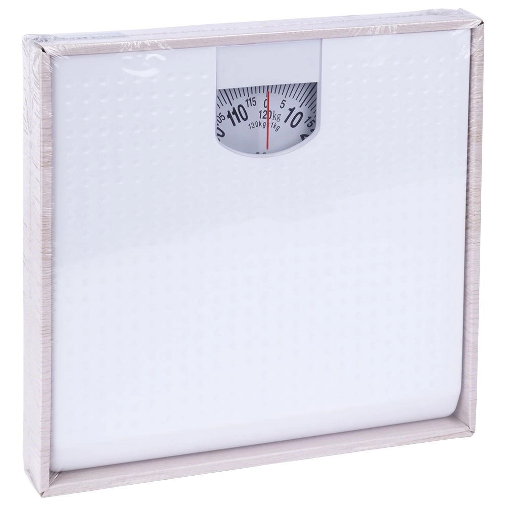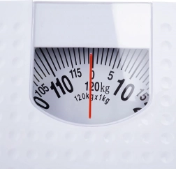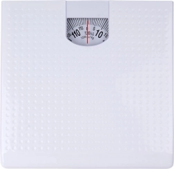 Mechaniczna waga łazienkowa z wytrzymałą obudową z tworzywa i niskim profilem jest idealna do użytku domowego. Dzięki przejrzystej skali w kilogramach do 120 kg szybko sprawdzisz swoją wagę bez czekania i bez baterii. Czysty, biały design pasuje do nowoczesnych i klasycznych łazienek.