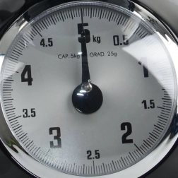 Duży analogowy cyferblat ze skalą co 25 g zapewnia szybką orientację i precyzyjny wynik podczas ważenia składników.