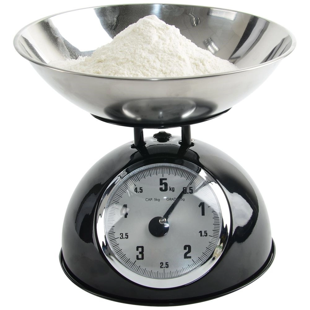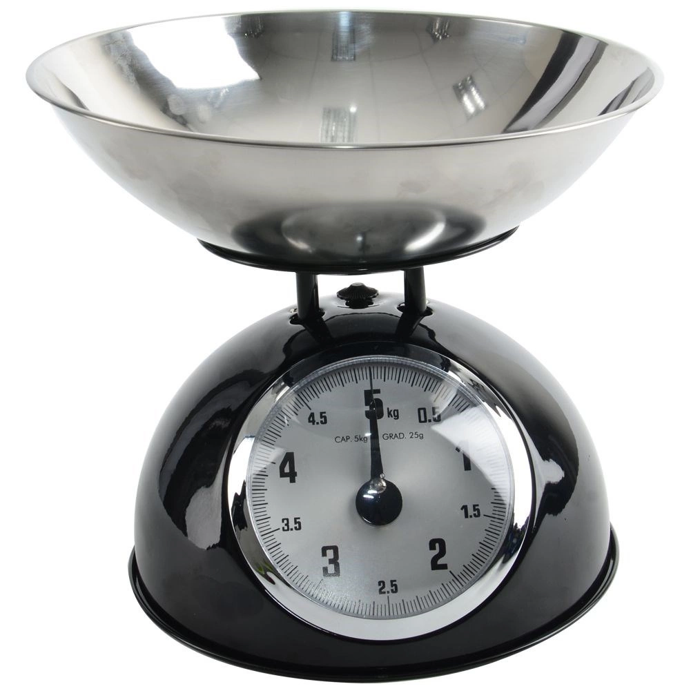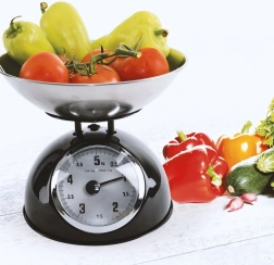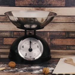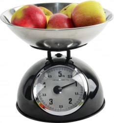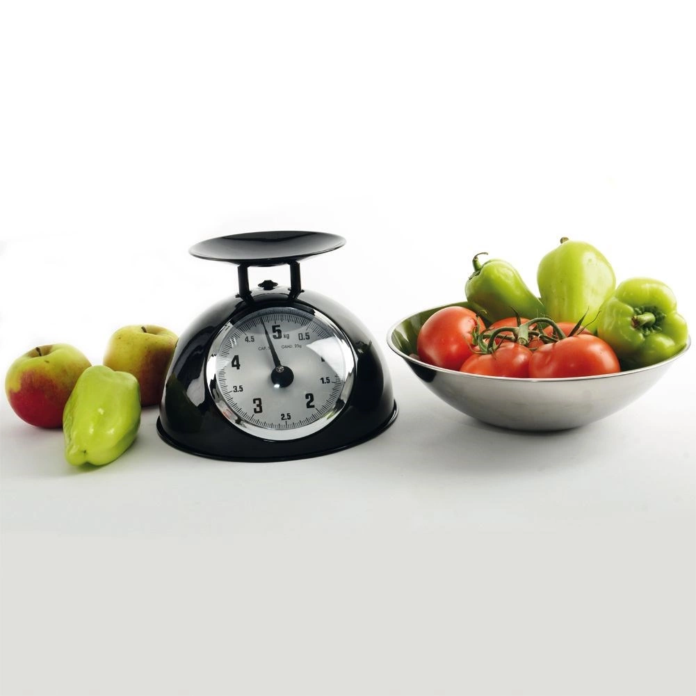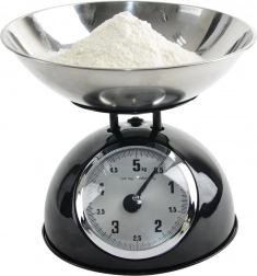 Ta mechaniczna waga w stylu retro to niezawodny pomocnik w każdej kuchni. Solidne metalowe korpus w czarnym kolorze oraz misa ze stali nierdzewnej gwarantują długą żywotność i łatwą pielęgnację. Dzięki analogowemu cyferblatowi z czytelnym oznaczeniem do 5 kg łatwo zważysz owoce, warzywa, produkty sypkie i mięso.