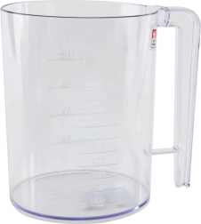 Przezroczysty dzbanek z wyraźną skalą 100–1000 ml oraz oznaczeniami 1/4–1 l ułatwia kontrolę ilości składników i konsystencji ciasta.