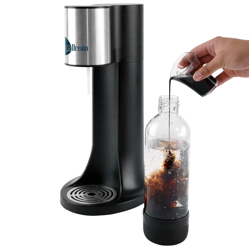 Domowy saturator do wody gazowanej AQUADREAM to praktyczne rozwiązanie na codzienne orzeźwienie. Umożliwia przygotowanie wody gazowanej, domowych lemoniad, a także lekko musującego wina dokładnie według upodobań. Dzięki kompaktowym wymiarom pasuje do każdej kuchni, a jego eleganckie czarne wykończenie dobrze komponuje się z nowoczesnymi urządzeniami.