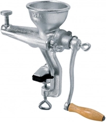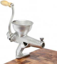 - Wytrzymałe żeliwo i drewniana korbka dla wygodnej obsługi.