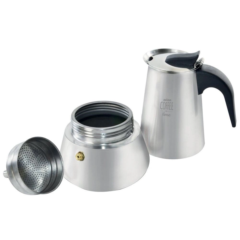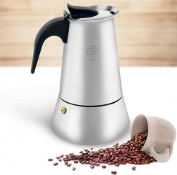 Ta wysokiej jakości stalowa kawiarka moka wprowadza autentyczny smak i aromat włoskiego espresso do Twojej kuchni. Solidny korpus ze stali nierdzewnej gwarantuje długą żywotność i równomierne rozprowadzanie ciepła, a ergonomiczny uchwyt z bakelitu zapewnia bezpieczny i wygodny chwyt.