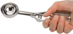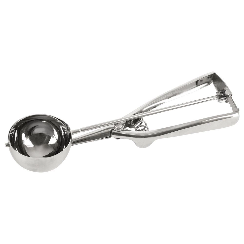 Praktyczna nierdzewna łyżka do lodów o średnicy 5,5 cm z automatycznym mechanizmem uwalniania dla łatwego serwowania. Dzięki ergonomicznej rączce i wysokiej jakości stali nierdzewnej przygotujesz równomierne kulki bez wysiłku. Idealna nie tylko do lodów, ale także do puree ziemniaczanego czy ryżu.