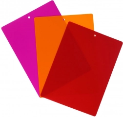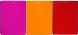 Gładka, nieporowata powierzchnia nie pochłania zapachów ani płynów i można ją myć w zmywarce. Kolorowe oznaczenie (czerwona, pomarańczowa, różowa) ułatwia podział na mięso, ryby i warzywa, co podnosi poziom higieny w kuchni i zapobiega krzyżowej kontaminacji.