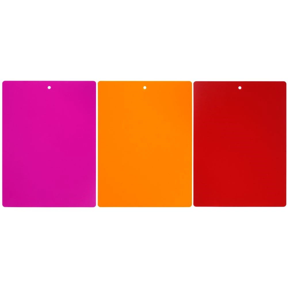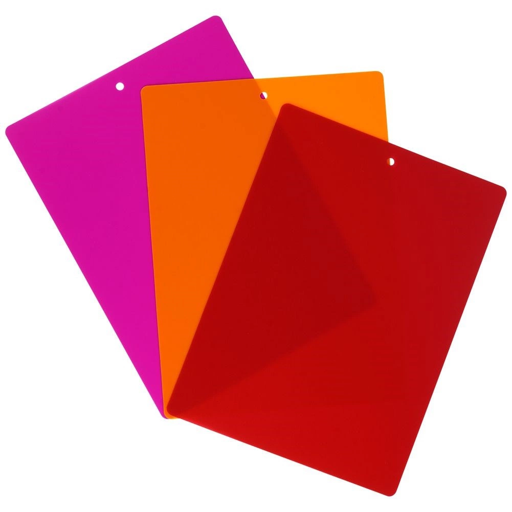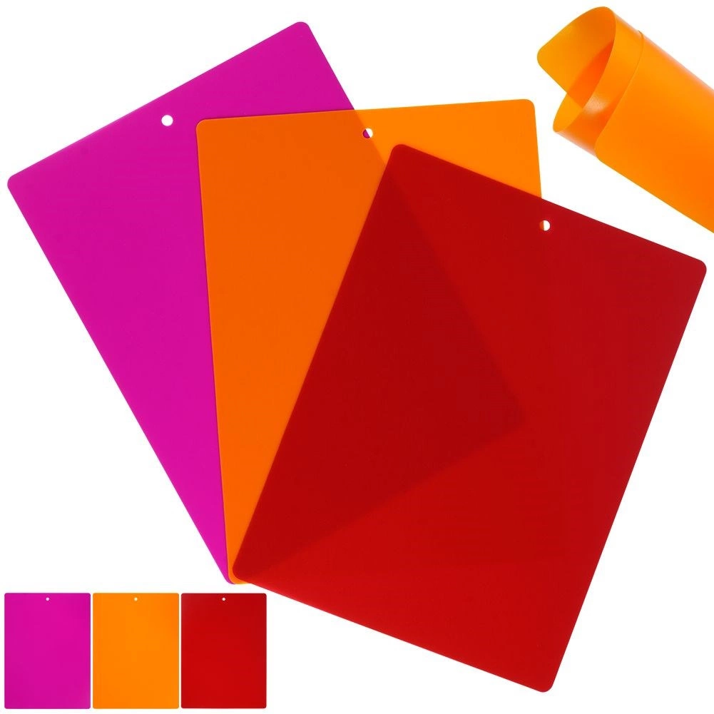 Dzięki temu zestawowi trzech kolorowych mat do krojenia zyskasz lekkich, kompaktowych i wyjątkowo praktycznych pomocników do kuchni. Grubość zaledwie 0,6 mm sprawia, że maty łatwo się zginają i umożliwiają wygodne zsypywanie pokrojonych składników prosto do garnka lub miski bez bałaganu.