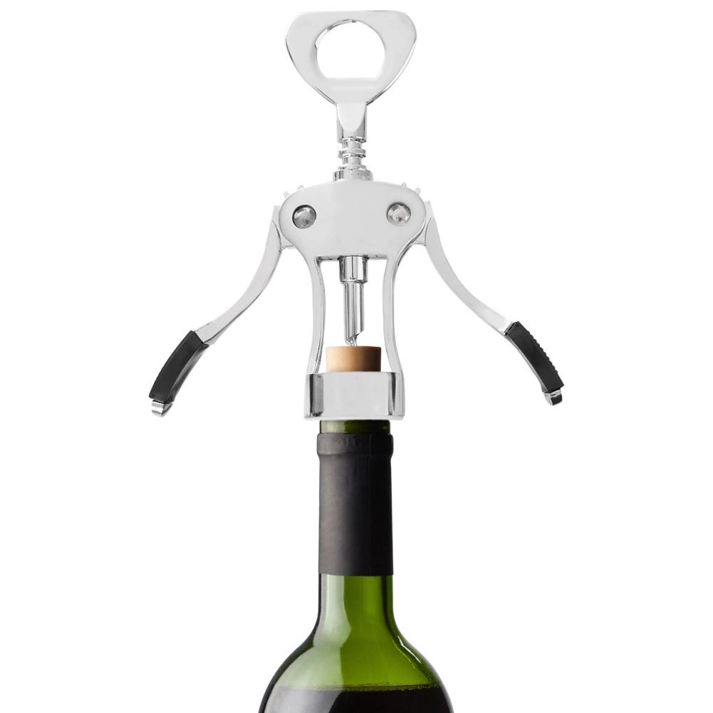 Ten skrzydełkowy korkociąg umożliwia płynne i bezpieczne wyciągnięcie korka za pomocą ślimakowego trzpienia i pary ramion, dzięki czemu otworzysz butelkę bez użycia siły. Wysokiej jakości metalowa konstrukcja w srebrnym wykończeniu zapewnia długą żywotność i niezawodność przy częstym użytkowaniu.