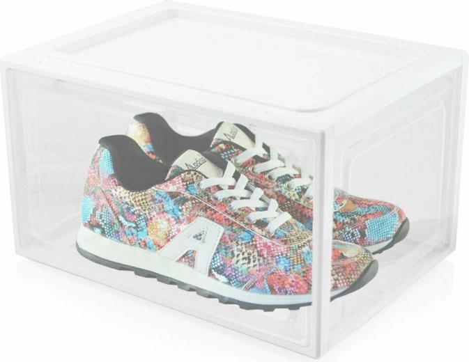 Praktyczny zestaw trzech pudełek na buty do przejrzystego przechowywania obuwia aż do rozmiaru 47. Dzięki przedniej klapie z magnesami pudełka łatwo się otwierają, a jednocześnie pozostają bezpiecznie zamknięte. 3 przezroczyste boki umożliwiają szybki podgląd bez konieczności otwierania. Prosty montaż na zatrzaski oraz możliwość piętrowania w kolumny oszczędzają miejsce w szafie lub przedpokoju.