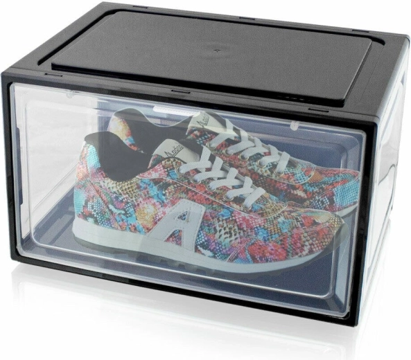 Zachowaj idealny porządek w swojej kolekcji obuwia. Zestaw 3 czarnych pudełek na buty łączy praktyczny design, trwałość i nowoczesny wygląd. Magnetyczne drzwiczki otwierają się od frontu, więc z łatwością sięgniesz po ulubioną parę nawet ze środka stosu.