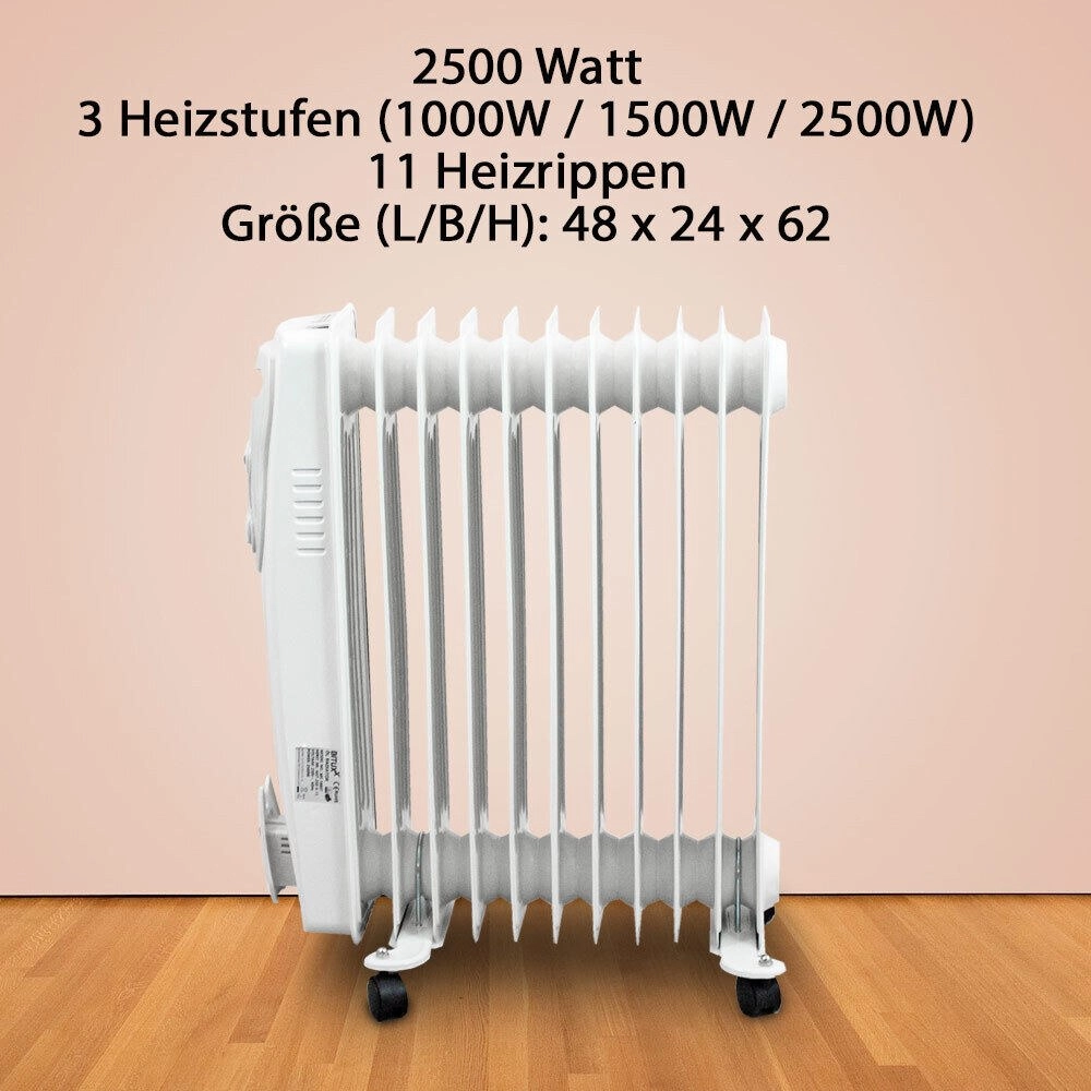 Szukasz niezawodnego i oszczędnego źródła ciepła na chłodne dni lub jako zapas przy awarii ogrzewania? Grzejnik olejowy BITUXX 2500 W z 11 żebrami gwarantuje równomierne promieniowanie ciepła i komfort bez przeciągów i hałasu. Dzięki termostatowi łatwo ustawisz wymaganą temperaturę, a trzy poziomy mocy (1000/1500/2500 W) dopasujesz do aktualnych warunków.