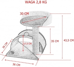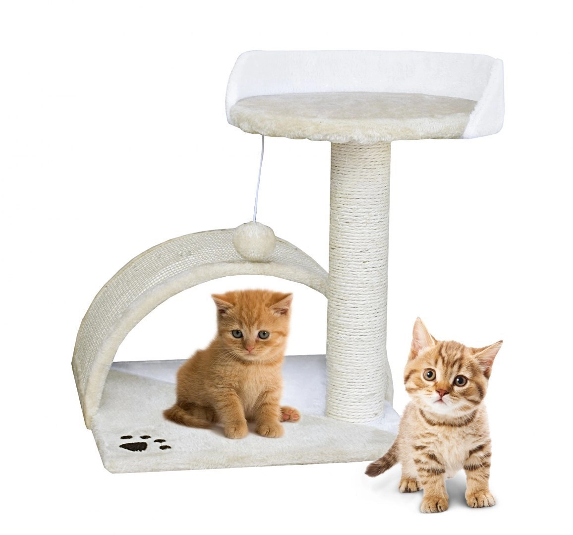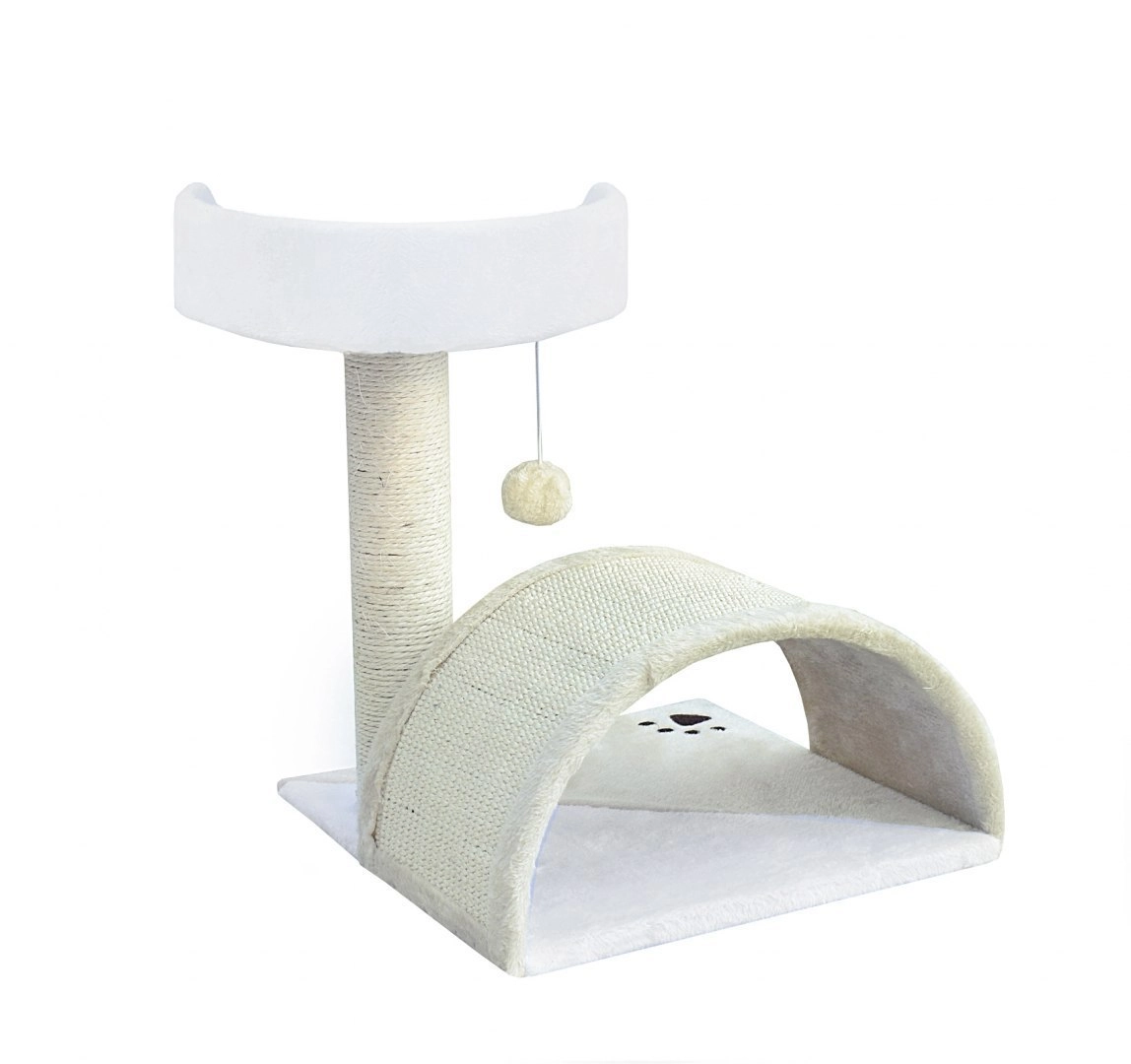 Wysokość 43,5 cm oszczędza miejsce, a jednocześnie oferuje wszystko, co potrzebne. Zawieszony pompon wspiera aktywną zabawę i utrzymuje kota w formie.