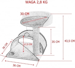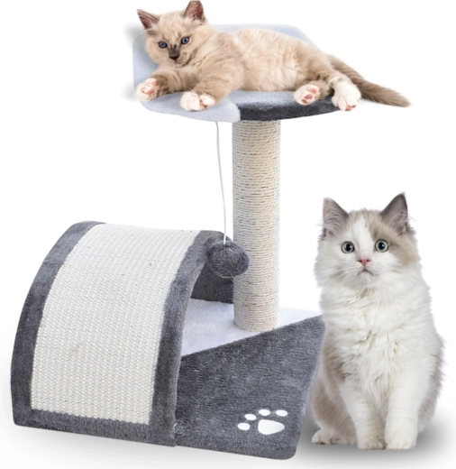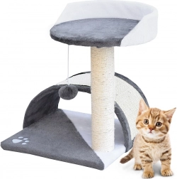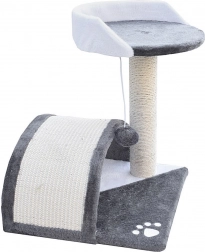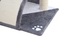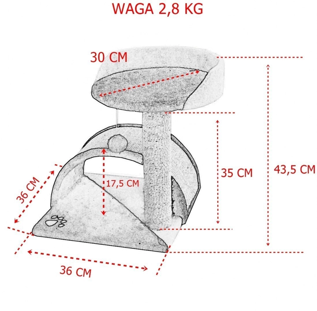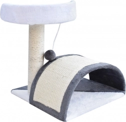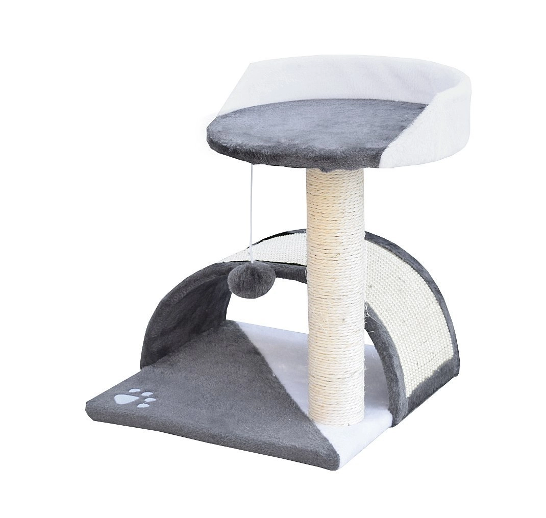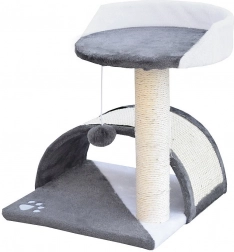 Stabilna konstrukcja z MDF z pluszowym obiciem oraz naturalny sizal gwarantują długą trwałość i wygodę. Nie brakuje zawieszonego pompona, który pobudza instynkt łowiecki i zachęca do ruchu. Stonowana biało‑szara kolorystyka łatwo dopasuje się do każdego stylu wnętrza.