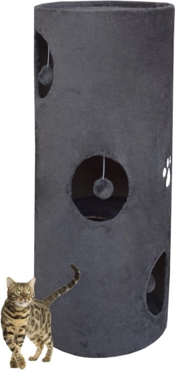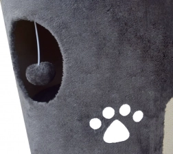 Wewnątrz znajdziesz wiele poziomów do odkrywania i odpoczynku, a w górnej części wygodne legowisko do spokojnej obserwacji otoczenia. Wiszące pompony w otworach wejściowych zachęcają do zabawy i polowania, dzięki czemu Twój pupil zajmie się sobą nawet bez Twojej pomocy.