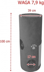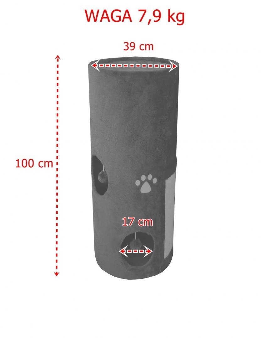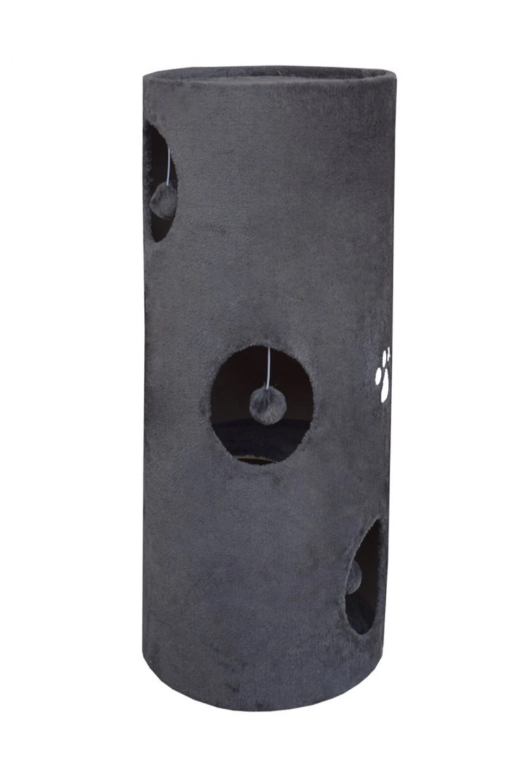 Ta wysoka drapakowa tuba w uniwersalnym szarym kolorze jest idealna dla kotów, które lubią się wspinać, chować i potrzebują regularnie ścierać pazury. Zewnętrzna strona jest pokryta delikatnym pluszem dla maksymalnego komfortu, a zintegrowany panel z sizalu wspiera naturalne drapanie i chroni Twoje meble.