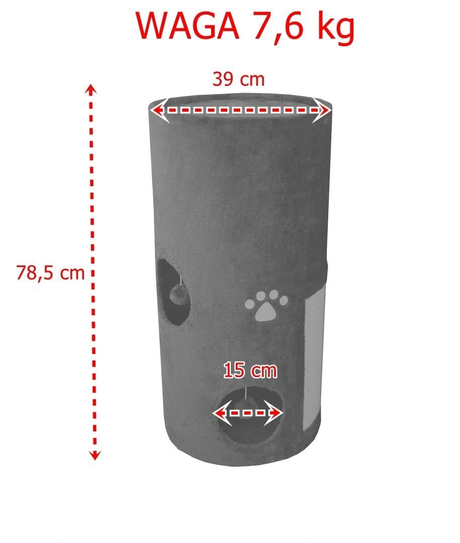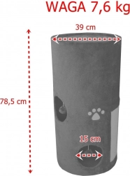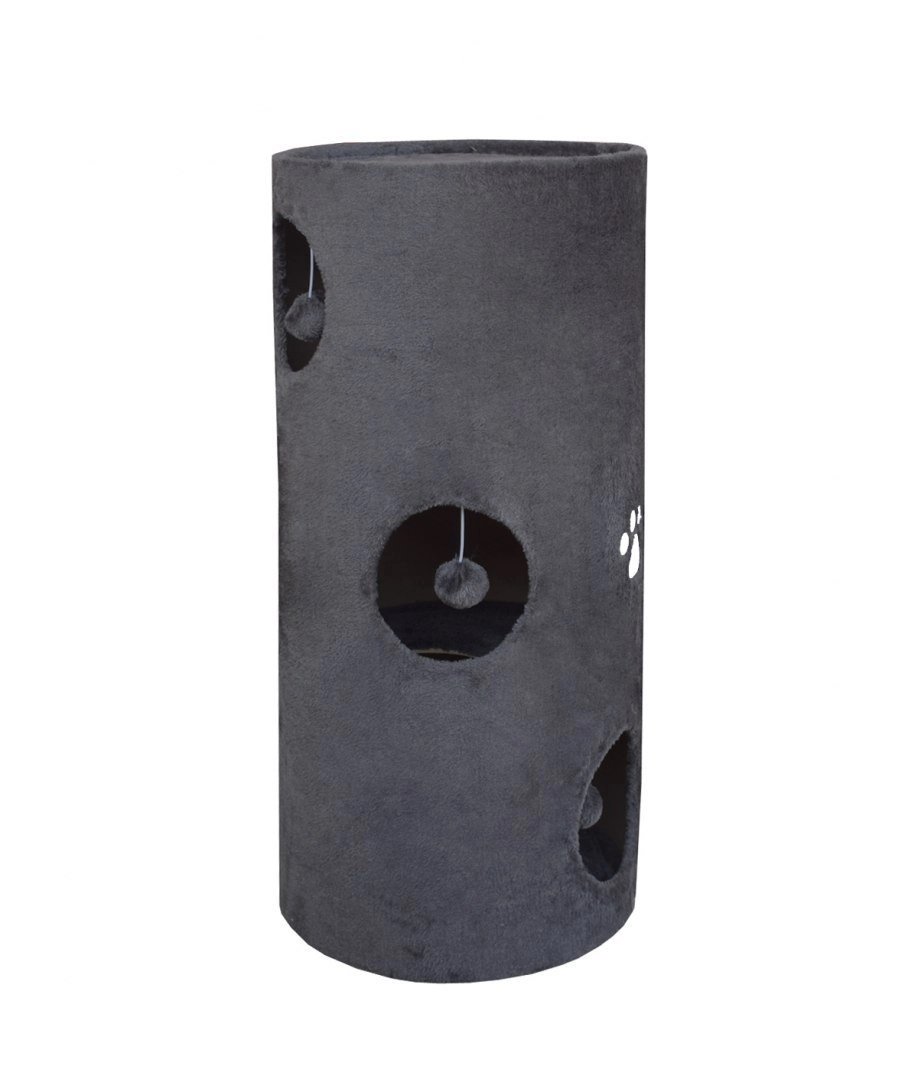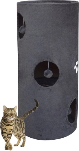 Stylowa wieża do drapania dla kotów o wysokości 78 cm oferuje kilka kryjówek, górne legowisko i zintegrowane zabawki. Całość pokryta jest mięciutkim pluszem i wyposażona w panel z sizalu do naturalnego ostrzenia pazurów. Wieża jest stabilna, wygodna i świetnie wpasuje się w każde wnętrze dzięki uniwersalnemu szaremu kolorowi.