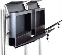 Podwójny zestaw umożliwia rozdzielenie poczty prywatnej i firmowej lub korespondencji dwóch gospodarstw domowych. Każda skrzynka ma własny zamek i szeroki wrzut 33,5 × 3,5 cm.