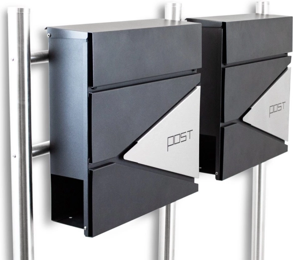 Konstrukcja z ocynkowanej stali malowanej proszkowo oraz stali nierdzewnej jest odporna na deszcz i mróz, zachowując estetykę przez wiele lat. Dzięki zamkowi na klucz korespondencja jest chroniona przed nieuprawnionym dostępem, a czysty grafitowy design z akcentami ze stali nierdzewnej pasuje do architektury nowoczesnej i klasycznej.