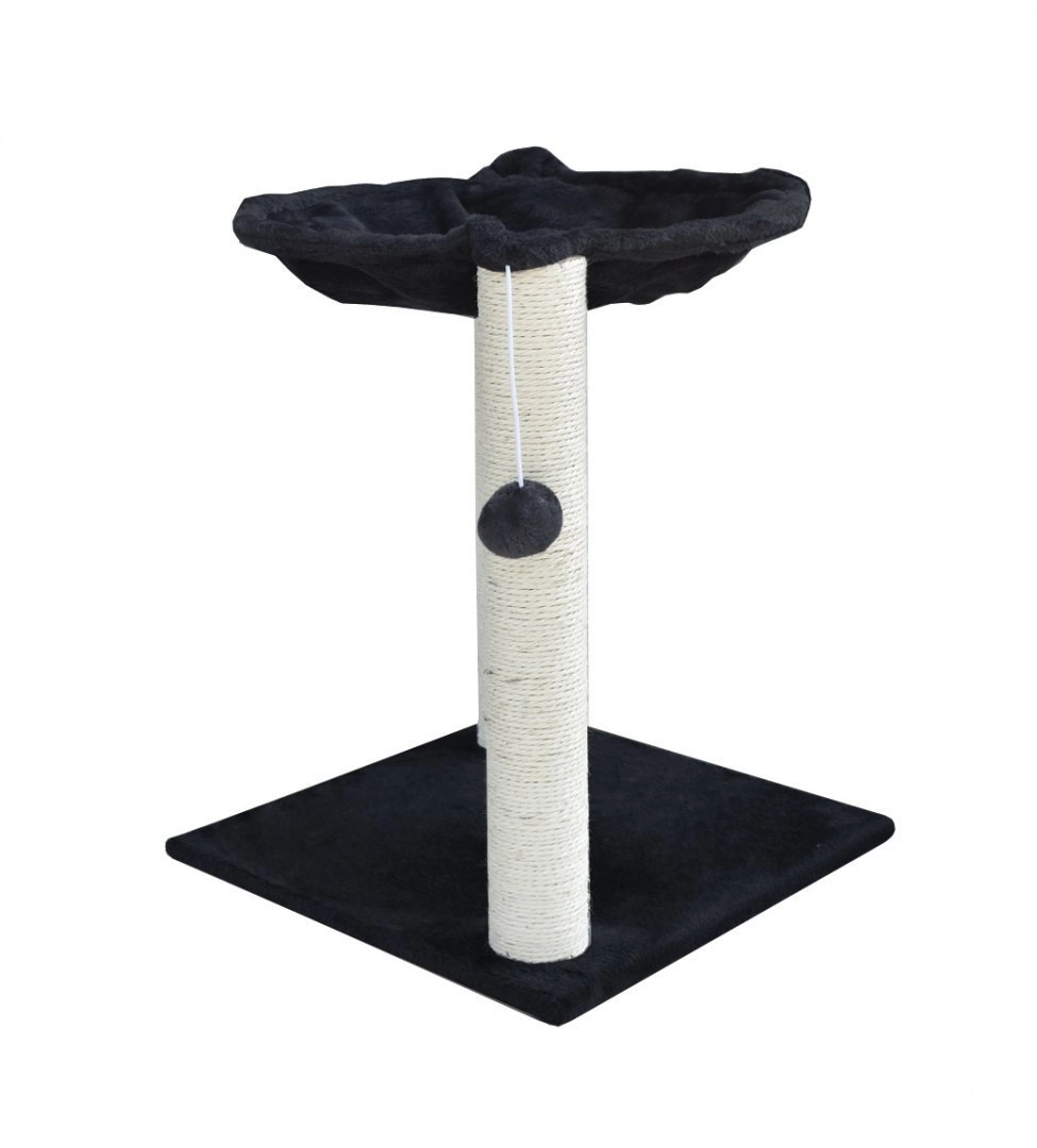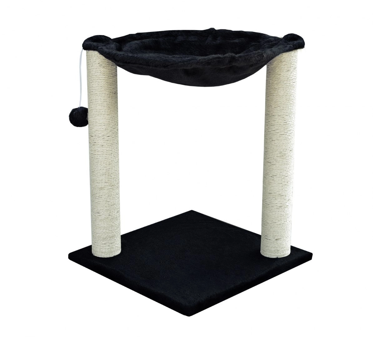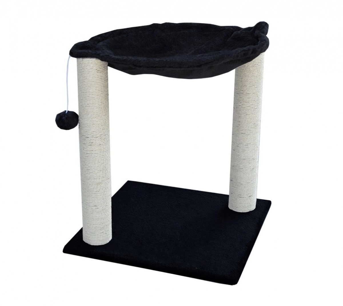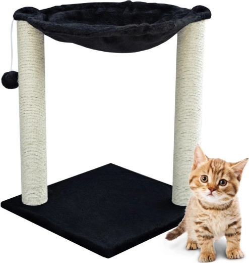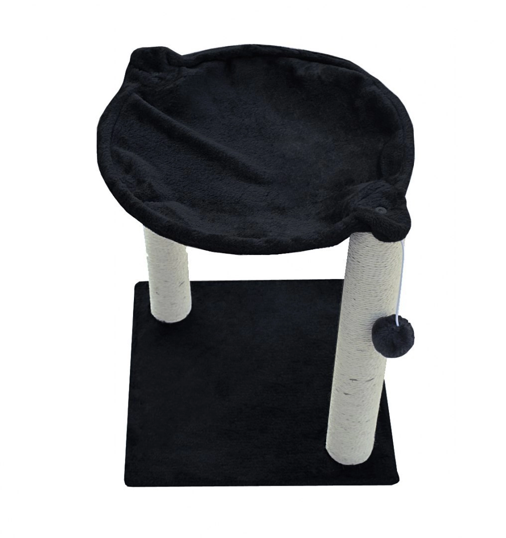 Minimalistyczny czarny design doskonale wpasuje się w większość wnętrz. Dzięki kompaktowym wymiarom sprawdzi się także w mniejszych mieszkaniach, a jednocześnie zapewni kotu bezpieczne, podwyższone miejsce do relaksu. Zawieszona zabawka w formie pompona pobudza naturalny instynkt łowiecki i dostarcza godzin zabawy.
