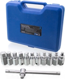 Zawartość zestawu obejmuje najpopularniejsze rozmiary profili sześciokątnych i czworokątnych, więc z łatwością wykonasz większość prac serwisowych. Dzięki napędowi 3/8" nasadki są kompatybilne ze standardowymi grzechotkami i kluczami typu T.