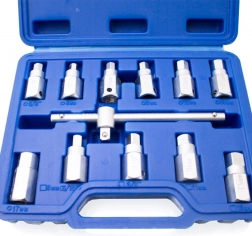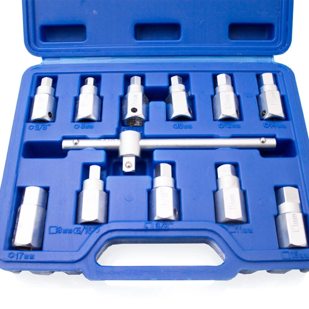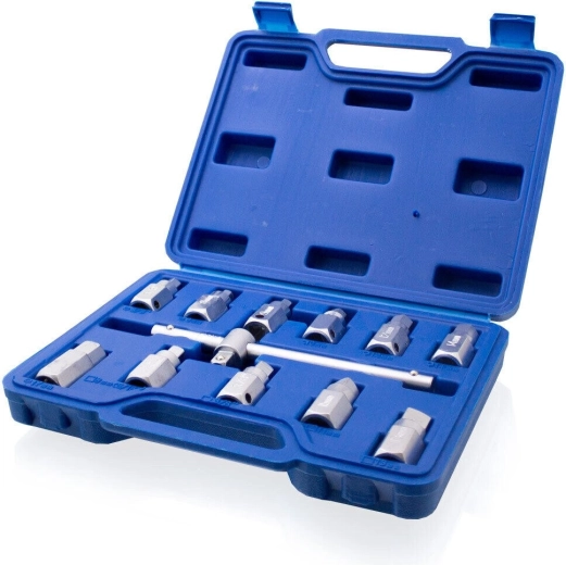 Ten uniwersalny zestaw nasadek pozwala efektywnie pracować z różnymi typami korków olejowych w samochodach i motocyklach. Wytrzymała stal Cr-V gwarantuje niezawodność nawet przy częstym użytkowaniu, a solidne ułożenie w praktycznej walizce utrzymuje wszystko przejrzyście na swoim miejscu.