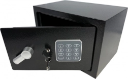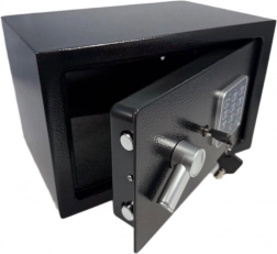 Sejf łączy szybki dostęp przez klawiaturę cyfrową z pewnością mechanicznego klucza w sytuacjach awaryjnych. Solidny stalowy korpus i bolce ryglujące chronią przechowywane przedmioty, a miękka filcowa wyściółka wnętrza zapobiega zarysowaniom biżuterii, elektroniki i dokumentów.