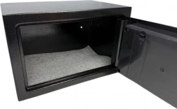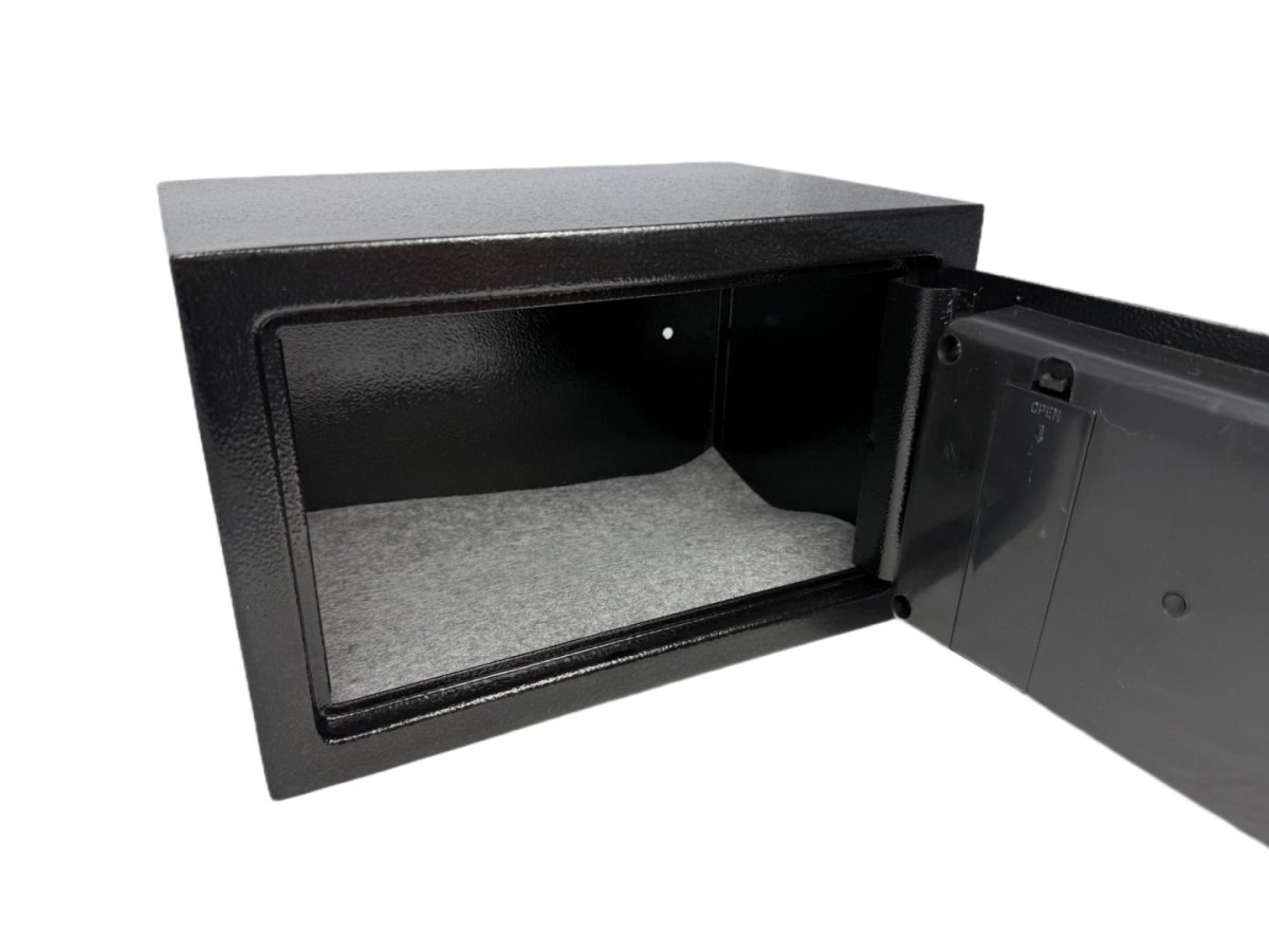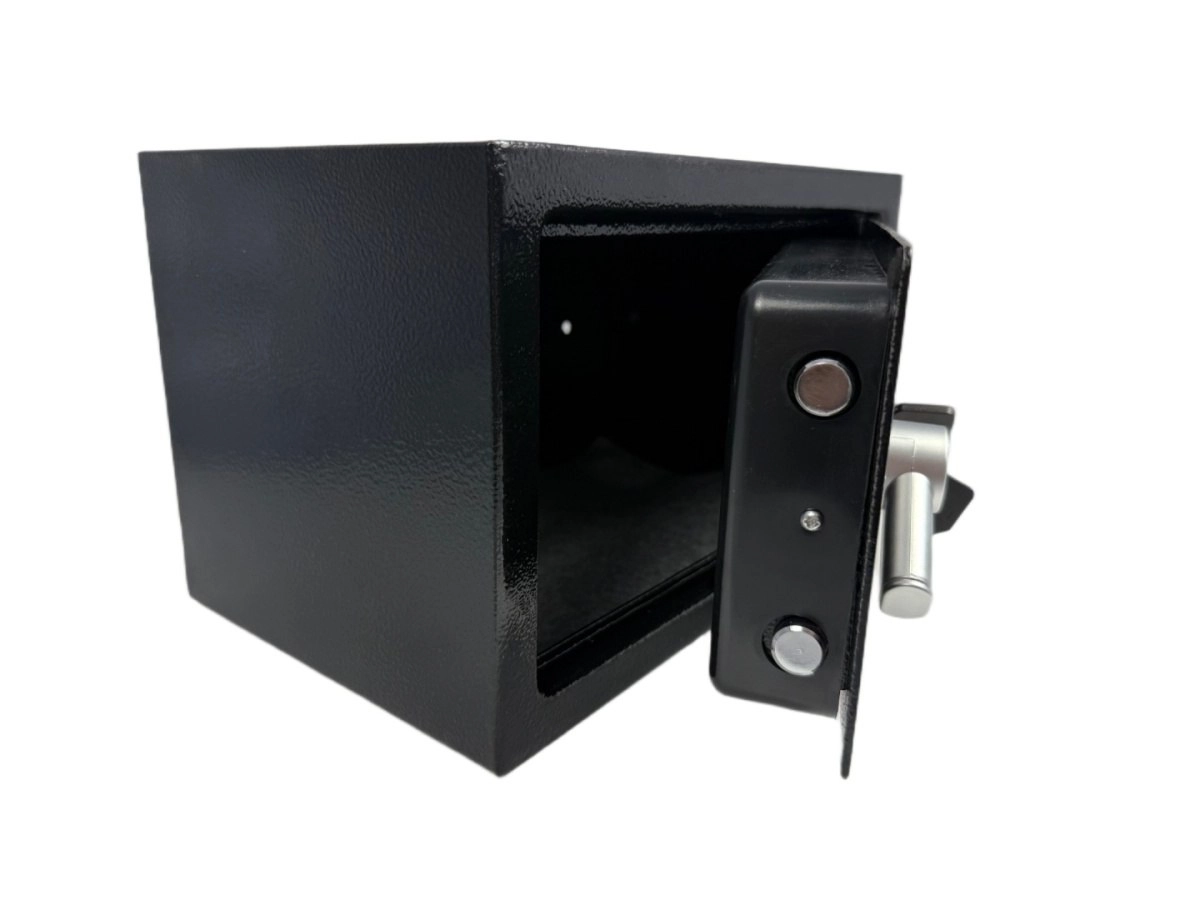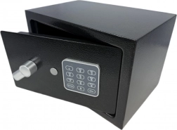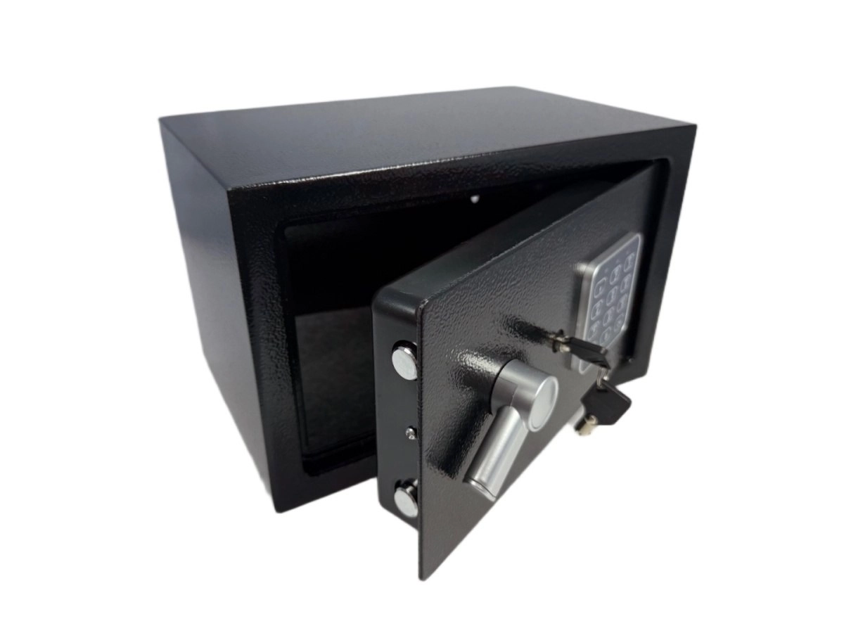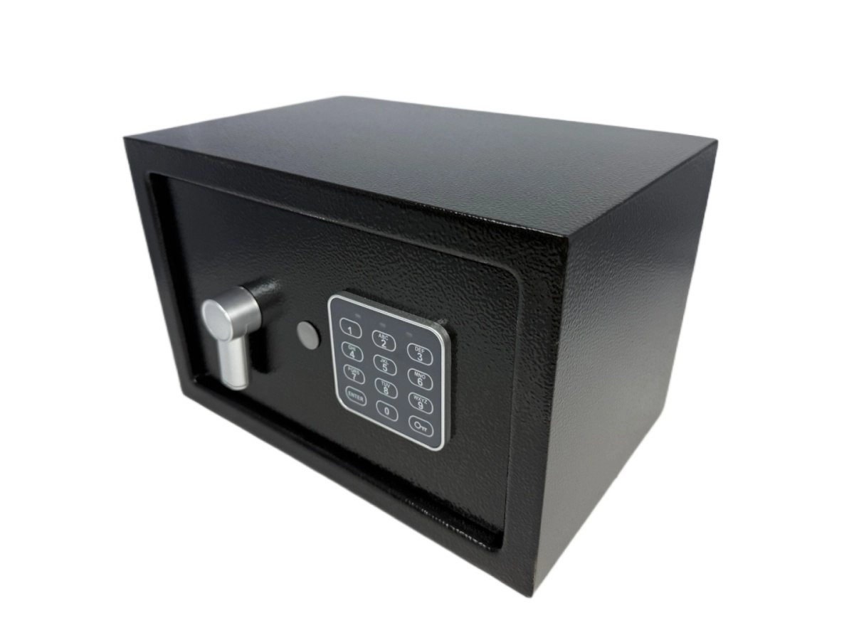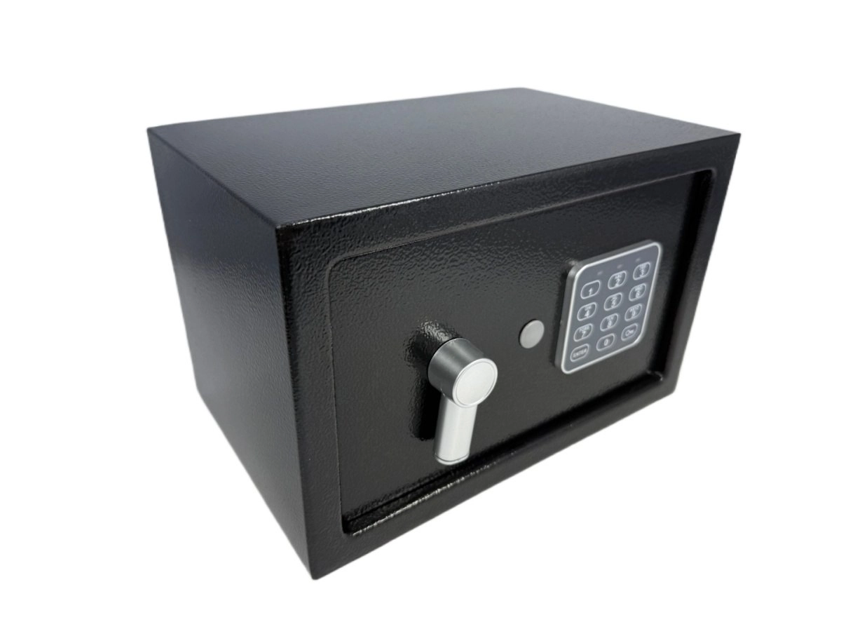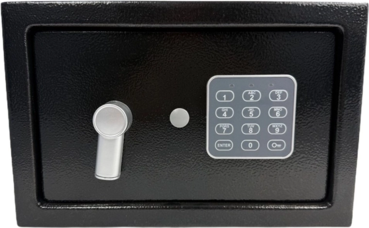 Montaż jest prosty dzięki otworom wstępnie nawierconym do kotwienia w ścianie lub podłodze. Kompaktowe wymiary pozwalają umieścić sejf w szafie, pod biurkiem lub na półce — idealny do biur, domów i wynajmowanych przestrzeni.