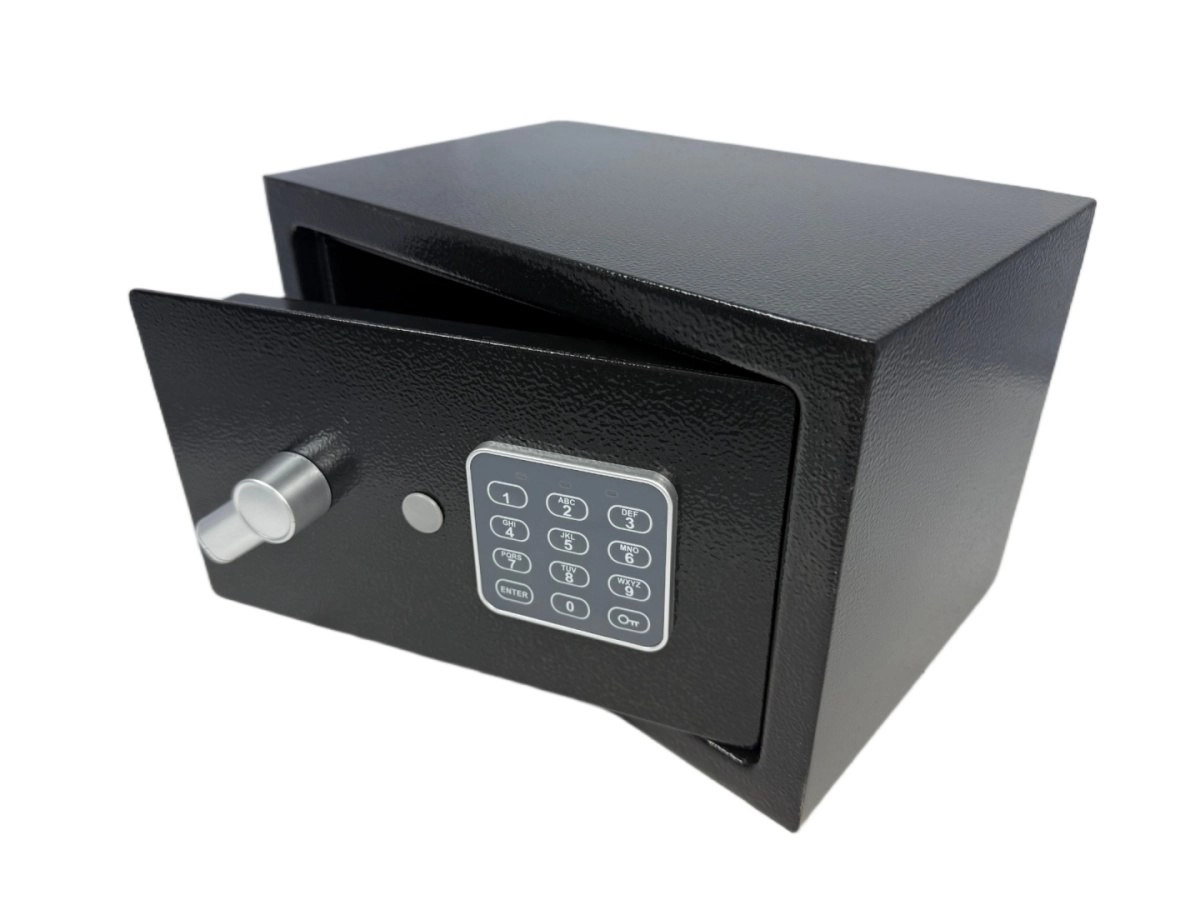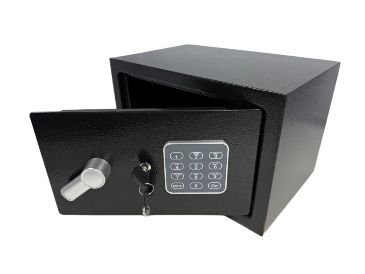 Elektroniczny zamek z klawiaturą numeryczną do szybkiego otwierania oraz zapasowy mechaniczny klucz na wypadek awarii zapewniają maksymalną wygodę i bezpieczeństwo.