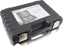 Klucze wykonane są z stali chromowo‑wanadowej (CrV), znanej z wysokiej wytrzymałości, odporności na zużycie oraz korozji. Przechowywanie i transport ułatwia wytrzymała plastikowa walizka z profilowanymi przegrodami, dzięki którym każdy klucz ma swoje miejsce.