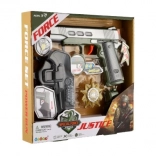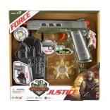 Zawiera pistolet, kaburę, odznakę szeryfa i gwizdek, co poszerza możliwości zabawy.