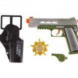 • Zestaw zawiera: Oprócz pistoletu także kaburę, odznakę szeryfa i gwizdek.