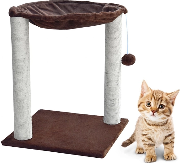 Podaruj swojej kocie własną oazę spokoju i zabawy: miękkie, hamakowe legowisko na stabilnej podstawie z dwoma słupkami z sizalu do drapania oraz wiszącą pomponikową zabawką. Ten stylowy dodatek w uniwersalnym brązowym kolorze łączy wygodny odpoczynek, wspieranie naturalnego drapania i bezpieczną, stabilną konstrukcję.