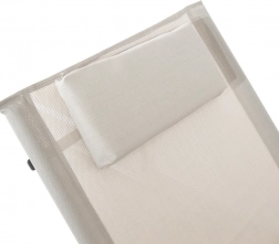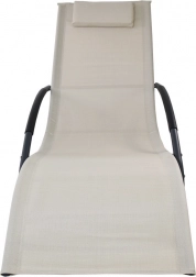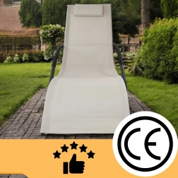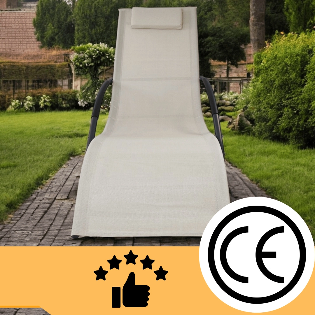 Elegancki bujany leżak w kolorze beżowym do relaksu w ogrodzie, na tarasie i przy basenie. Łączy nowoczesny design, wytrzymałe materiały oraz stabilną stalową konstrukcję o nośności 150 kg. Oddychający Textilene szybko schnie i jest odporny na promieniowanie UV, a ergonomiczny kształt i poduszeczka pod głowę zapewniają maksymalny komfort.