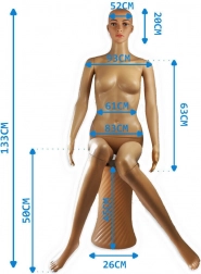 Dzięki lekkiej konstrukcji manekin jest łatwy w przenoszeniu i aranżacji. Trwały plastik zapewnia długą żywotność nawet przy częstym przebieraniu. Siedzenie o wysokości ok. 45 cm umożliwia ustawienie na stołku lub podstawie i tworzy naturalne pozy dla sukienek, żakietów, płaszczy oraz bielizny.